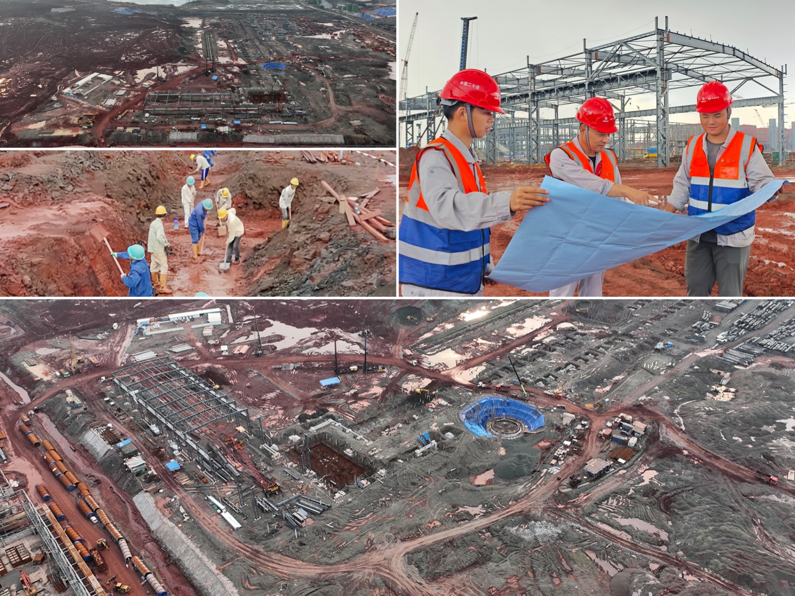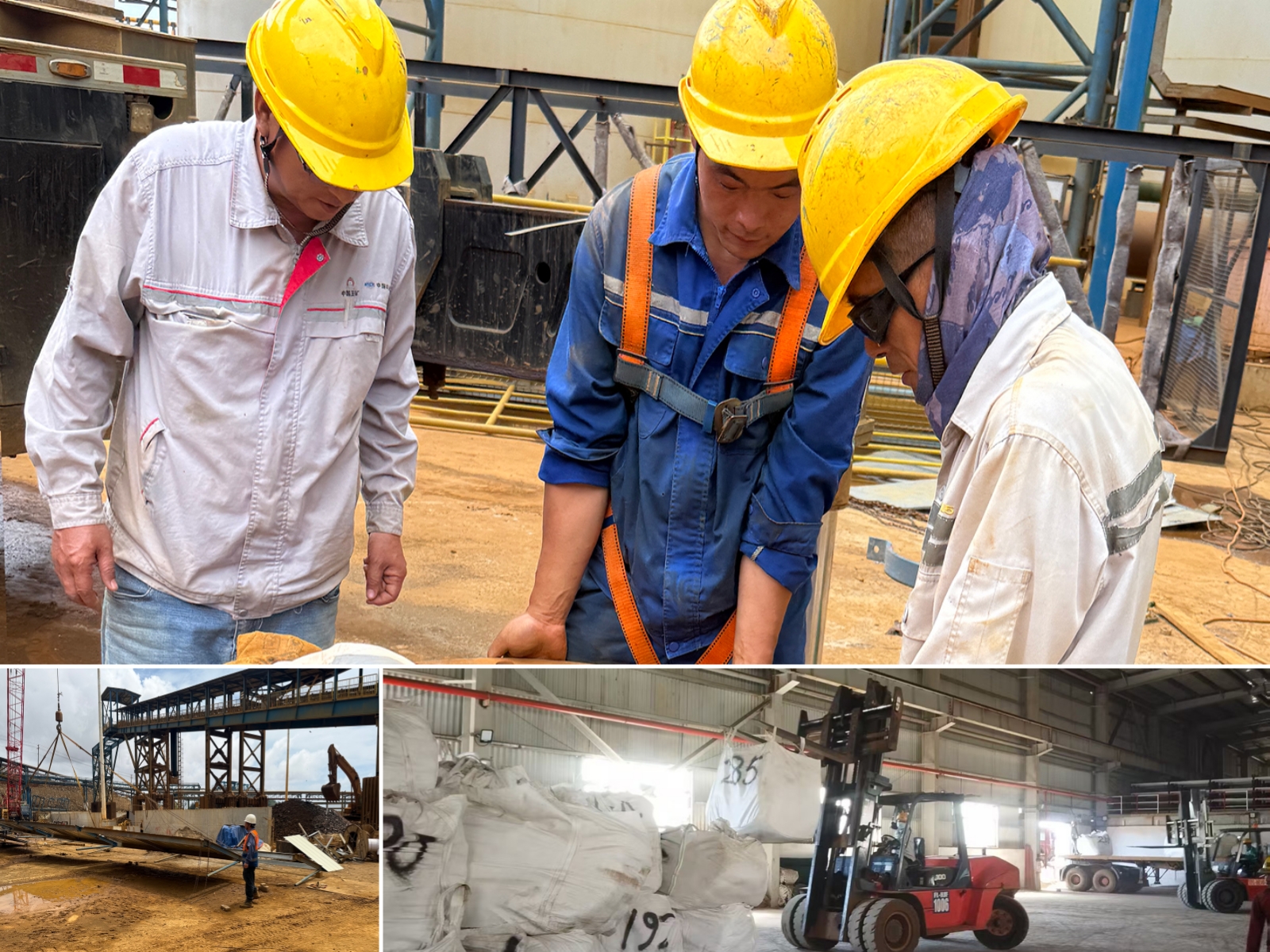 印尼OBI园区ONC湿法残积矿项目、印尼OBI园区中区公共道路工程项目、印尼OBI电厂排水明渠渗水修复工程项目2名管理人员、12名中方施工人员坚守一线,道路项目钢筋工高温下精绑钢筋,残积矿项目吊装、焊接作业精准推进,明渠修复项目完成注浆材料入库,为后续施工夯实物资基础。