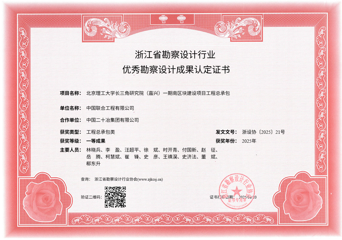 8月18日,浙江省勘察设计行业协会2025年优秀勘察设计成果奖评选结果揭晓,上海球盟会承建的北京理工大学长三角研究院(嘉兴)一期南区块项目荣获工程总承包类一等成果。